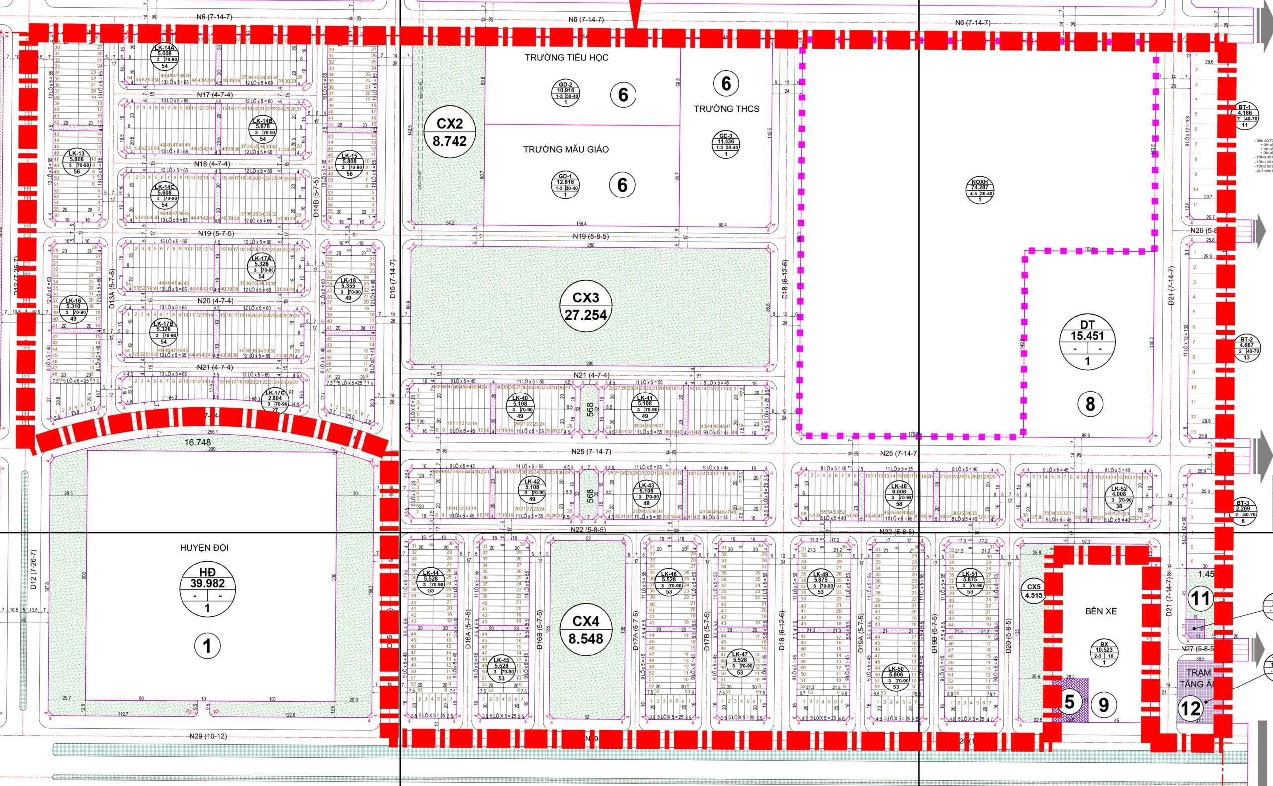 | Hạ tầng nội khu | Đường nội bộ 14–28 m trải nhựa, điện – nước âm, vỉa hè rộng, công viên, trường học |